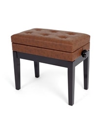 Affordable piano bench with storage under the seat in black matt finish.