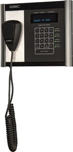 Paging station features 4 direct-select buttons in addition to a standard keypad and a handheld PTT...
