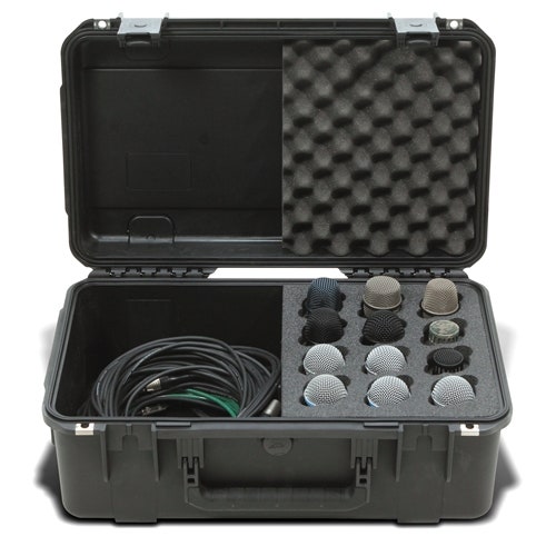 Väskor för mikrofoner som lagras vertikalt. Väskorna tillhör 3i-serien som är en samling formsprutade vattentäta väskor och är konstruerade av ultrahållfast "polypropylene copolymer resin" och har en vattentät och lufttät design som är mycket resistent mot skador och stötar.