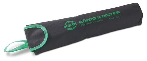 For music stands 101. Waterproof nylon carrying case featuring velcro flap fastener and nylon handle. Color: black with silk-screened K&M logo.