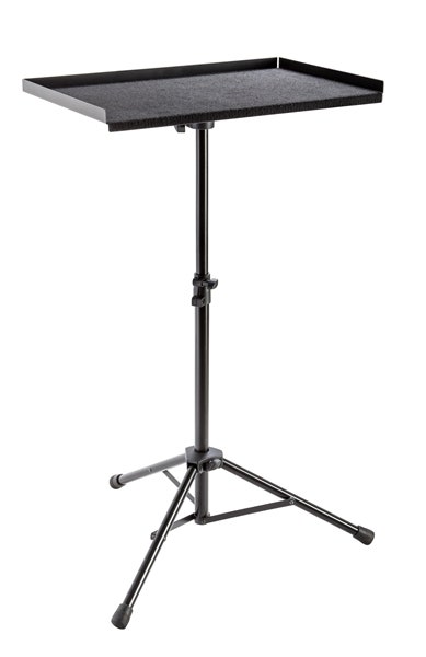 The stable and practical percussion stand provides more than enough space for a variety of accessories. The large robust steel tray is open to one side and is covered with noise dampening felt. For transport, the tray can be removed easily without the use of tools. The robust tripod legs quickly collapse together into a compact and easy to carry package.