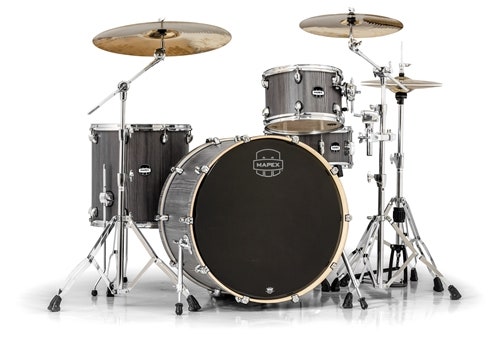 4-pce Mars Series Rock 24 Shell Pack - Smokewood (grey). Includes: 24x16 Bass Drum, 12x8 Tom Tom, 16x16 Floor Tom, 14x 6½ Snare Drum, and TH800 Tom Holder.