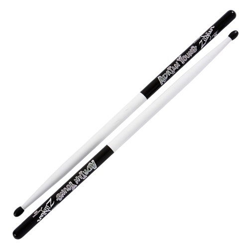 The back half of the stick is black with Adrian's name printed on the stick in signature "No Doubt" text in a great silver checkerboard graphic, while the front half is white. Complemented by a black nylon tip for extra durability and clear projection, this Zildjian stick is truly distinctive.