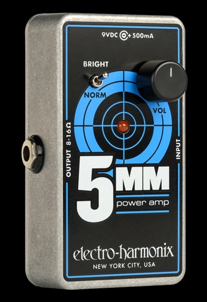 The EHX 5MM Guitar Power Amplifier is a pocket-sized power amp that’s a great alternative to a traditional guitar amplifier. It’s super portable and perfect in playing situations where a high-powered amp is not required… like when you’re mic’d on stage, in the studio or as a backup.