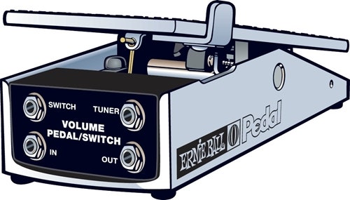 Volympedal för stränginstrument med envägs fotomkopplare för kanalbyte på förstärkare, styrning av effekter m.m.