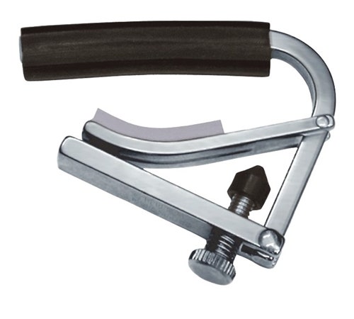 Shubb Lite Capo for steel string guitar. Fits most acoustics and electric. Made of aluminum, and it weighs less than 30 gram.