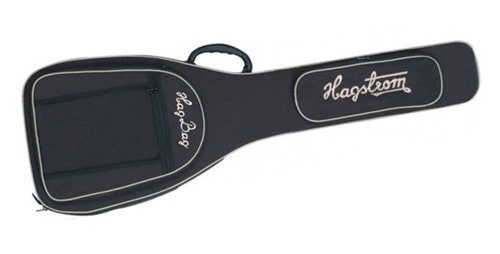Article number 3091240Hag-Bag for solid body Bass Models. Black with beige logos and outlines. 2 pockets, handle, double shoulder straps, and headstock protector.