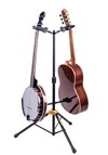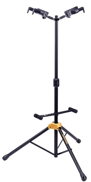 The HERCULES Double Guitar Stand GS422B PLUS accommodates two instruments and features the upgraded foldable Auto Grip System (AGS) yokes, Instant Height Adjustment Clutch, Specially Formulated Foam (SFF) rubber contacts and the adjustable back rests.
