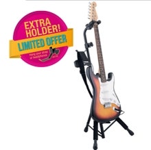 The best selling Hercules GS412B-Pus Guitar Stand, including the new HA700 Guitar Strap/Headphone Holder....