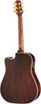 On a Dreadnought body cutaway-electric, the pairing of a solid North American Sitka Spruce top with Low-Mass bracing and genuine Rosewood fingerboard produces a guitar tone that is loud, bassy, and harmonically complex. A glass-fibre reinforced neck ensures a lifetime of stability; unique amongst guitars of this class. Indian Rosewood (dalbergia latifolia) is an ideal back and side wood with an innate beauty; an excellent tonewood contributing a depth and richness to the voice of the instrument. Sustainably harvested from plantations in both India and Indonesia.