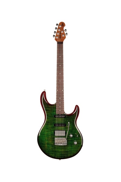 Featuring a light-weight okoume body with a premium figured maple top and newly designed custom Music Man electronics, this latest evolution of Steve Lukather’s signature guitar perfectly fuses comfort, beauty, and tonal versatility. The HSS model, equipped with the same new bridge humbucker and also sports Ernie Ball Music Man’s renowned Cutlass single coils, providing players with a variety of tonal options. Both pickup configurations are furnished with a 5-way switch and a 20dB boost push/push volume knob. Other appointments include a roasted maple neck, rosewood fingerboard, and floating Music Man vintage tremolo system.