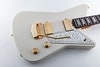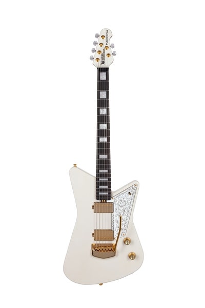 The pickguard is laser etched with an ornate design coordinated to compliment specific finish options. Other appointments include medium profile 22 stainless steel frets, gold and chrome hardware options, matching headstock, and Ernie Ball Music Man smooth tremolo system.