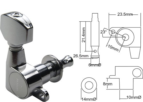Tuner for electric guitar. 6 left. Chrome.