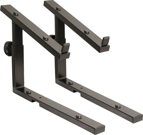 Ideal to attach a second keyboard or laptop to the table-style keyboard stand - Omega« 18810. The large laptop support arms can hold the largest of keyboards. The upper support arms can take a max. load of 25 kg. The stacker can be adjusted to the height you require using the snap and clamping knob. There are 8 heights to choose from. The upper support arms can be tilted in 5 different positions from 0° (horizontal) to 20°. Self-adhesive rubber pads prevent scratches and instrument slip.