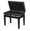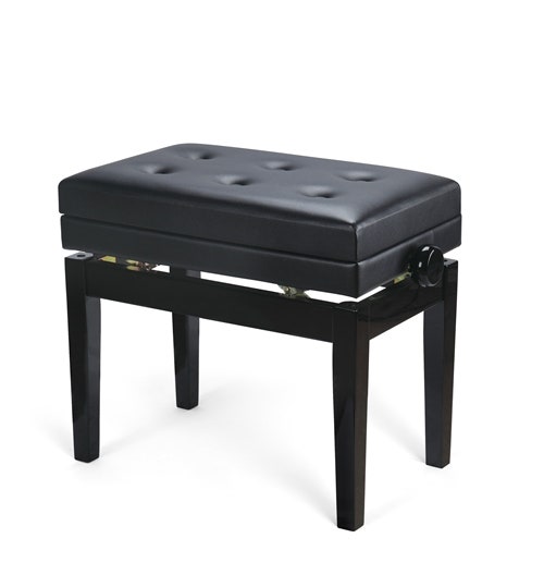 Adjustable piano bench with storage under the seat in black finish.