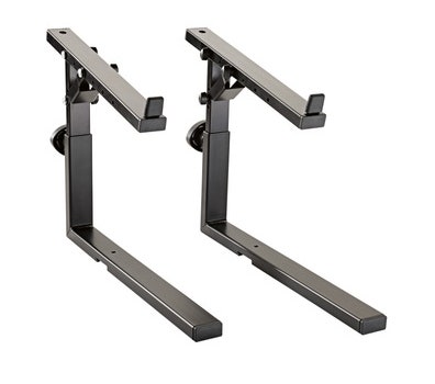 Bigger master keyboards can be placed on the large lower support arms. The depth of the upper support arms can be adjusted to 4 positions, so the lower keyboard remains visible.