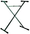 X-style stand with additional locking positions for extremely low level usage. Quick and easy to set up and fold. Because of the unique height adjustment mechanism the stand always opens to the desired height and width. Tubular construction, black mat finish. Non-marring pads on support arms to protect instrument.