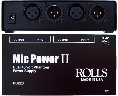 The PB223 is for powering phantom powered microphones with 48VDC. Since the unit uses a 100KHz switching power supply there is no audio noise generated. The PB223 has output pull down resistors so it will work with any mixer. The PB223 is identical to the PB23, except it powers two microphones rather than one.