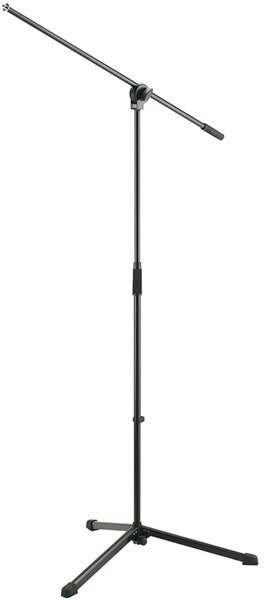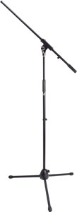 Entry-level, low-priced microphone stand. The practical swivel joint allows the one-piece boom arm to be simultaneously positioned for tilt and length. Thanks to a low weight of only 1.85 kg, it is particularly suitable for the mobile musician. The stand requires little space as its base diameter is only 660 mm. The large foot end caps help to make the stand stable and reduce unpleasant transmission noise.