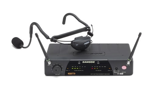 The Samson AirLine 77 AH7 Fitness Headset system is a wireless microphone solution designed to meet the specific demands of fitness instructors and active performers. With the unique AH7 micro transmitter mounted to a sweat-resistant Qe fitness headset microphone, you can free yourself completely from cables and beltpacks for a truly exhilarating and motivating experience. This allows you to focus on your class or performance, and not have to worry about your audio.