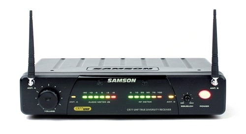 High-performance UHF true diversity wireless receiver. Balanced XLR and 1/4" output jacks and front panel power switch, RF level meter and squelch control.