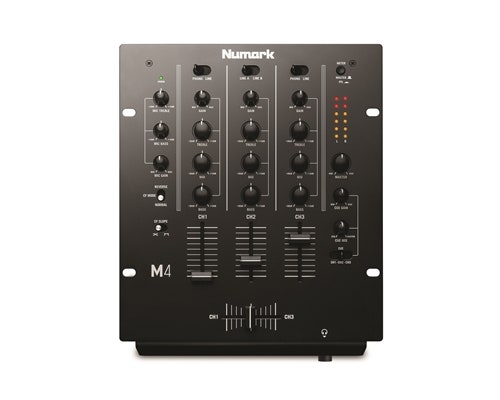 M4 is a three-channel tabletop mixer designed for any DJ who needs maximum flexibility. It features a replaceable crossfader with reverse and slope controls, a 1/4” microphone input with EQ, and plenty of routing for phono and line level devices.