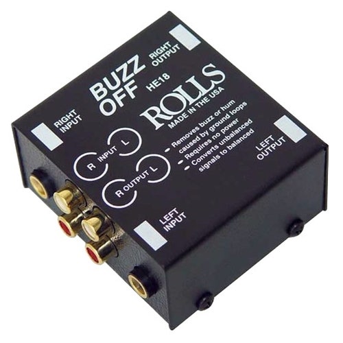 The HE18 is a two channel audio hum and buzz remover. Everyone knows how annoying it is to have 60 cycle hum in your sound. Now you can eliminate virtually all ground hum and buzz by simply inserting the HE18 into the audio path. Plus, the unit will convert an unbalanced signal into a balanced signal, and vice-versa. This greatly improves overall noise performance.