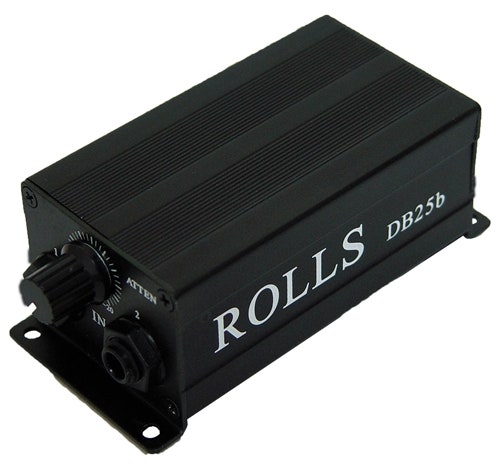 The DB25b is a transformer balanced, passive direct box. It features a Ground Lift switch for hum elimination, and an Attenuator control for padding the input signal from -20dB to -infinity dB. Padding the input signal provides a way to connect the DB25b to a line level signal, even a speaker level signal and connecting it to a balanced line or Mic input on a mixer. The two 1/4 inch; inputs are paralleled pass-throughs to also send the input signal to a tuner, pre amp, etc..