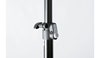 Two easy-to-carry speaker stands made of high quality aluminum in a carrying case. Fiberglass-reinforced fittings and a compact clamp with a patented push-button system affords user-friendly height adjustment and ensures stable support for the speakers. The leg construction adjusts by an easy-to-use clamping lever.