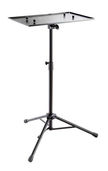 To secure the laptop, the clamping bolts are pressed on the laptop using wing nuts. The height of the stand can be adjusted variably.