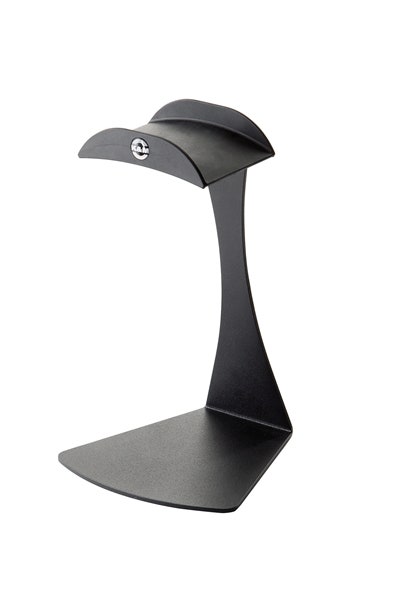 Present or store your headphones with this attractive headphones table stand. The black structured surface and the exclusive design provide for perfect stability and high functionality. The stand is ideal for home use and professional studio use as well. The rubber-covered holder protects the headphones from damage. Flat rubber pads ensure that the headphones table stand is slip-resistant.