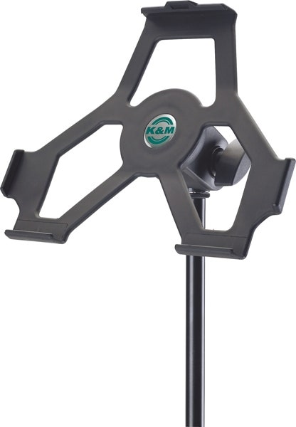 A clever way to show off your iPad. The mount is guaranteed to hold the iPad effectively and safely. For use on stage, in the rehearsal room or at home - the 3/8“ internal thread means the holder can be attached to any microphone stand easily and quickly. The iPad is clipped in and out of the holder effortlessly. An easy-to-use wing nut adjusts the tilt so the user can easily find a position to suit them. The iPad switches rapidly between the vertical and horizontal format without slipping.