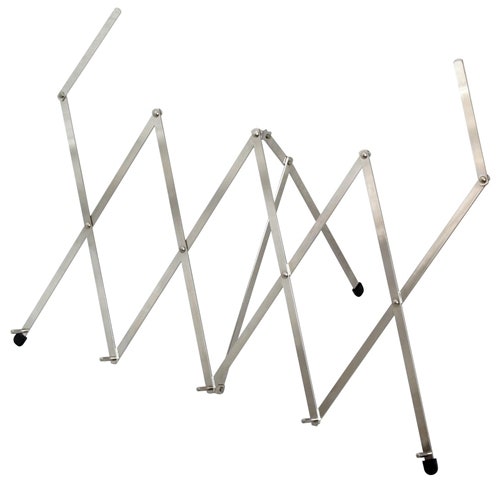Table Music Stand - Nickel- Colored. Expandable, folding table-top music stand with sheet music retainers.