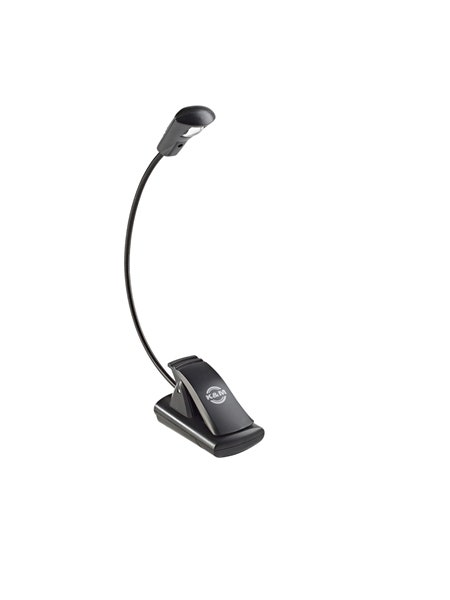 Versatile light with one extra bright and long-lasting LED rated for 100,000 hours. The flexible gooseneck provides an extremely variable adjustable light beam. The extra wide clip (up to 25 mm) attaches to music desks, table tops etc. It can also be used as a standing light. Very compact and easy-to-use. Includes 3 batteries (1.5 V AAA) with a battery life of up to 40 hours.