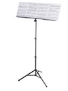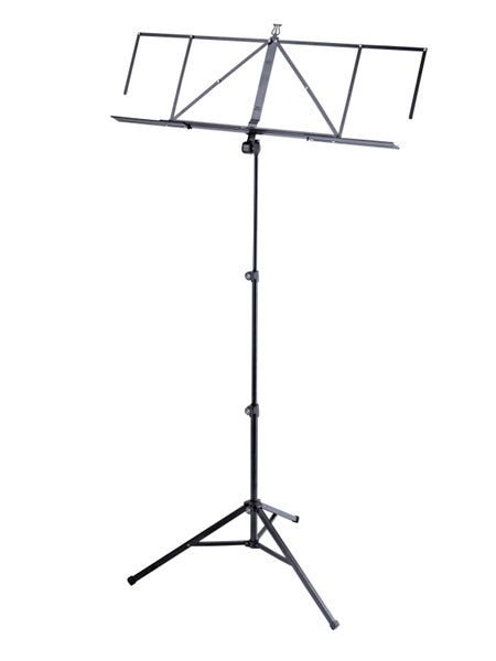 This music stand is equipped with an expandable music desk. Both music rests can be expanded to the right and the left and together with the additional sheet music holder provide for the viewing of 4 DIN A4 sheets of music next to each other. The comfortable angle is facilitated through very fine zinc-die-cast teeth. The expandable music desk collapses to a small and easy to transport size.