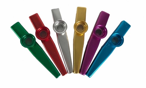 The Reno Metal Kazoo is the perfect introduction how to play a musical instrument, featuring a durable metal body and comes in various colors. Price per pc (30pc in a jar)