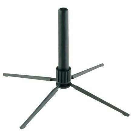 Unique, compact and extremely light flute stand with 4-leg base for Böhm flutes and/or cross flutes. Plastic peg diameter 18 mm. The zinc die-cast legs ensure a very high stability. Folded up the stand fits in almost every pocket.