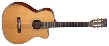 OM body style. Solid Thermal spruce top, solid sapele back and sides. Takamine TLD-2 preamp. Natural gloss...