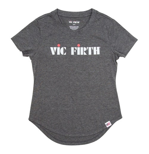 The Vic Firth Women’s Logo Tee is a stylish charcoal gray t-shirt made from premium tri-blend fabric with the Vic Firth logo across the chest.