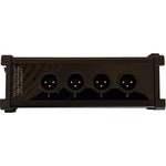 Article number 3906110XLR Male to CAT Breakout Box. Supports the transmission of 4-channel audio signals trough a single CAT cable.