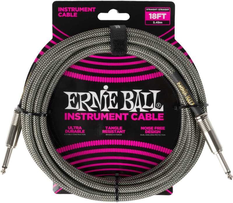 Ernie Ball instrument cables feature a high-quality design made with superior components that are built to last. Dual-conductors deliver reliably clear tone with crisp highs, tight mids, and rich harmonics. Multiple shielding materials preserve the signal with low handling noise, and the braided jacket exterior provides a tangle-resistant experience.