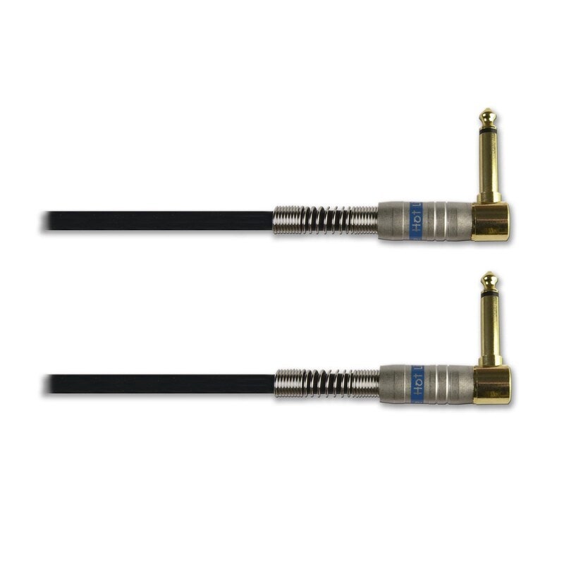 Patch cable with angled 1/4" goldplated metal plugs. Ideal for patching, connecting effects pedals, etc. 30cm.