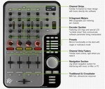 Beyond basic mixing and control, the SCS.1m makes a radical departure from traditional mixers via four rotary encoders (“virtual knobs”) with LED rings and corresponding LCD “scribble strips.” These fully assignable encoders can be mapped directly into functions in the DJ software while providing visual feedback of knob position, even in low-light settings. Underneath, the LCD scribble strips confirm the software parameter being adjusted by each encoder, without the need to check your laptop. Of course, common assignments for these encoders can be saved as presets for fast recall.