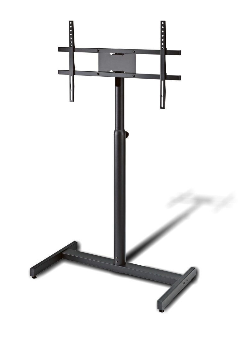 A high degree of stand stability and easy handling are the special characteristics of this impressive screen/monitor stand. The universal mount allows one to set up according to the VESA Standard for 42" to 65" flat screens. Two strips are screwed to the back of the screen/monitor, which is then attached to the wall mount. The large tubing saves space by providing a place to organize and store the cables. The height can be adjusted in steps using an ergonomic height adjustment screw. The integrated adjustable feet stabilize the stand on uneven surfaces, providing for stability.