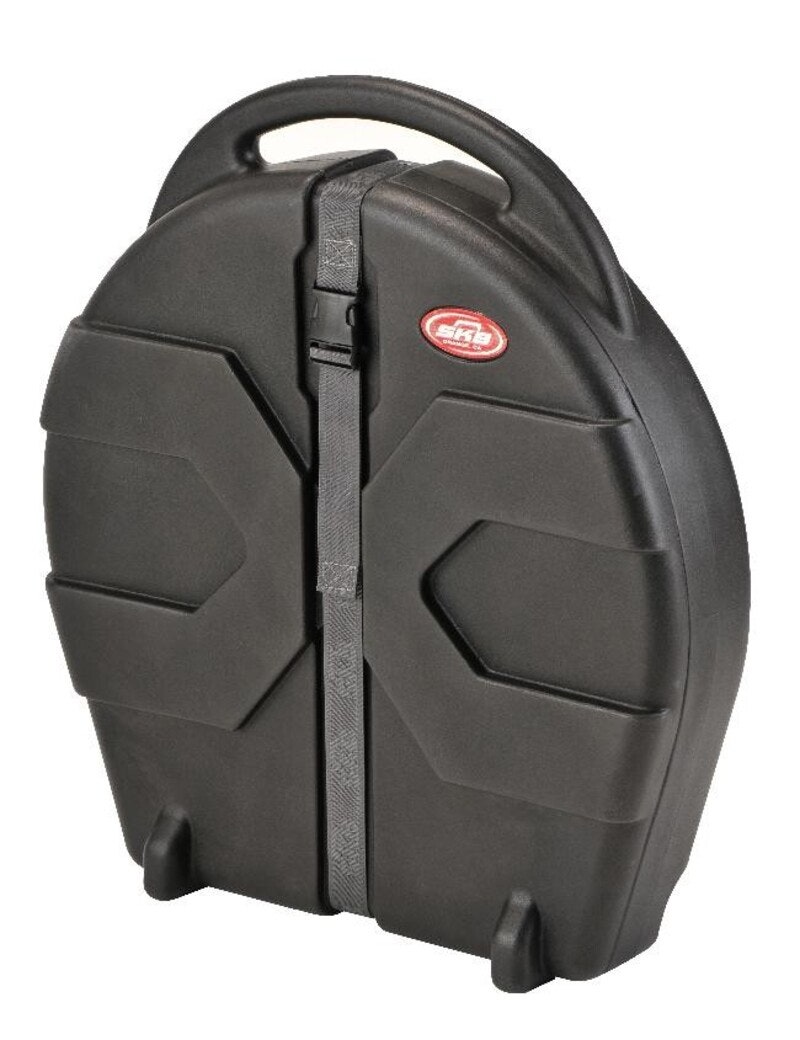 SKB has added another rolling cymbal vault to protect cymbals up to 22 inches. Roto molded of rugged Linear Low Density Polyethylene with a welded center post, the CV22W Rolling Cymbal Vault holds as many as eight cymbals*, up to 22" in diameter. The 22" Rolling Cymbal Vault was designed with a molded-in ergonomic carrying handle, in-line skate style wheels and an extra strong pull out handle, is the perfect transport for your cymbals.The 22" Rolling Cymbal Vault includes four cymbal pads for protection so the cymbals will travel without rubbing together. Molded with the famous SKB Roto "X" pattern the 22 inch cymbal vault will stack with SKB Roto-X Drum Cases and features a sturdy, high-tension slide release buckle with heavy-duty web straps for easy closure. *Fits traditionally shaped cymbals. China cymbals and flat ride cymbals will not fit.