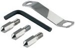 For drummer's throne - Gomezz« 14000, spikes are inserted into the rubber end caps. If required, the existing Allen screws can be replaced by the spikes to ensure fixed position of the drummer's throne while drumming and after leaving seat. Set consists of 3 spikes, 1 Allen key (to remove Allen screw) and 1 ring key (to fix spikes).
