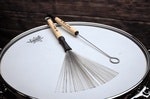 This retractable wire brush features a wood handle for a natural feel in the hand and for added sound color when played on the cymbals. The distinctive handle transitions to the wires with a rubber cover that assures a pleasing tone when played up against the rim. Medium gauge wire produces great sound and rebound, while the pull rod mechanism allows for an infinitely adjustable brush spread capable of maintaining any playing position. This lets the player completely fan out the wires for a full sounding stroke, or retract them as desired to create a more articulate sound.