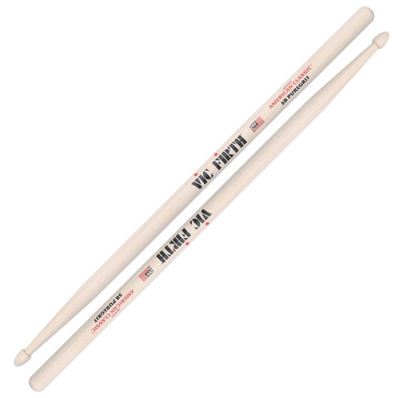 Because every drummer’s body chemistry is unique, one size doesn’t fit all when it comes to finding a way to improve grip. Vic Firth’s American Classic® PureGrit sticks are designed to offer two new tactile experiences for the 5A and 5B player. Together with our classic clear lacquer, VicGrip and DoubleGlaze, the PureGrit option offers players even more possibilities to find their own perfect feel. The American Classic® PureGrit sticks are not only lacquer-free, but also undergo a unique abrasive processing step, which adds a touch of “grittiness” and raw wood texture to the shaft. Because the stick is not treated, over time the player’s perspiration and oil penetrates the surface of the stick, creating a natural feel and a oneness with the wood.