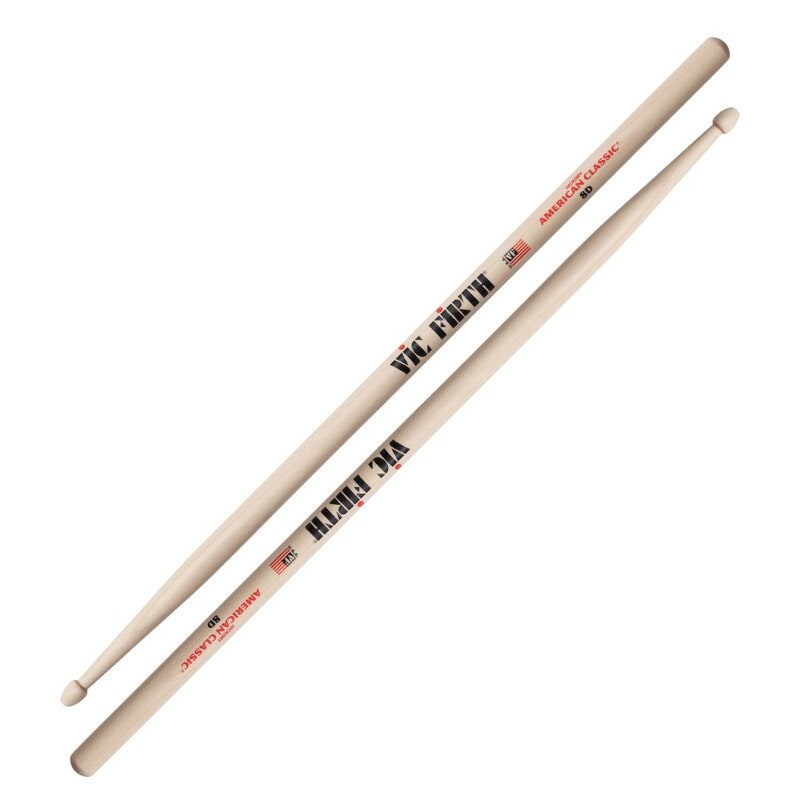 Like the 7A, with a bit more reach. The American Classic® line combines tradition and Vic Firth style. With bold designs, the Classics are turned from select hickory — a dense wood with little flex for a more pronounced sound. Hickory is also capable of withstanding a great deal of shock, making it highly durable. The tips are deeply back-cut for intensified cymbal response.