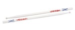 This dynamic stick features a two-color metallic Travis Barker logo on a highly visible white drumstick. The stick's round wood bead and beefy neck stand up to aggressive playing styles. This stick has great throw and balance, made of US Select Hickory and is made in the USA.